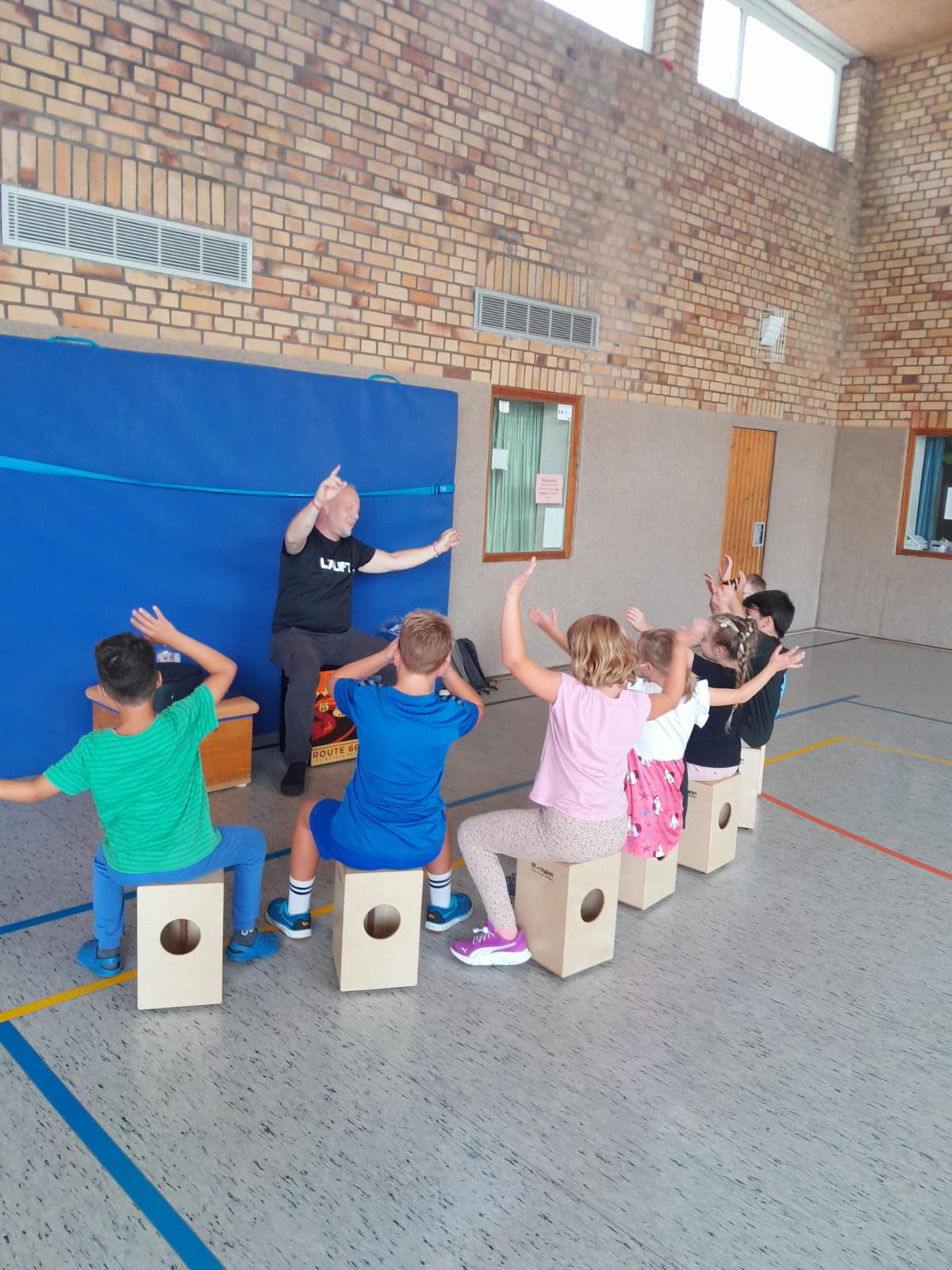 Nach den Olympischen Spielen ist vor der Fußball WM - dachte sich die OGGS und entschied kurzerhand, dass die Kinder die WM-Teilnehmer kennenlernen sollen. Neben dem Erkunden von "Land und Leuten" wird es dabei auch sportlich. In der Turnhalle wurde dazu ein toller Parcours aufgebaut, den am heutigen Freitag, 27.2.26, auch die Sportklassen noch ausprobieren durften. Die Kinder sind dabei sportlich nach Ecuador gereist. Leider ist auf dem Festland ein Vulkan ausgebrochen. Weshalb der Boden voller Lava war. Aber gemeinsam haben sich die Kinder mit verschiedenen Teambuilding-Maßnahmen auf die Galapagos Inseln gerettet, um von dort aus den Flieger zurück nach Deutschland zu nehmen. Die Reise ging durch den Dschungel über die Anden und schließlich mit Booten auf die Galapagos Inseln! Was für ein Abenteuer!