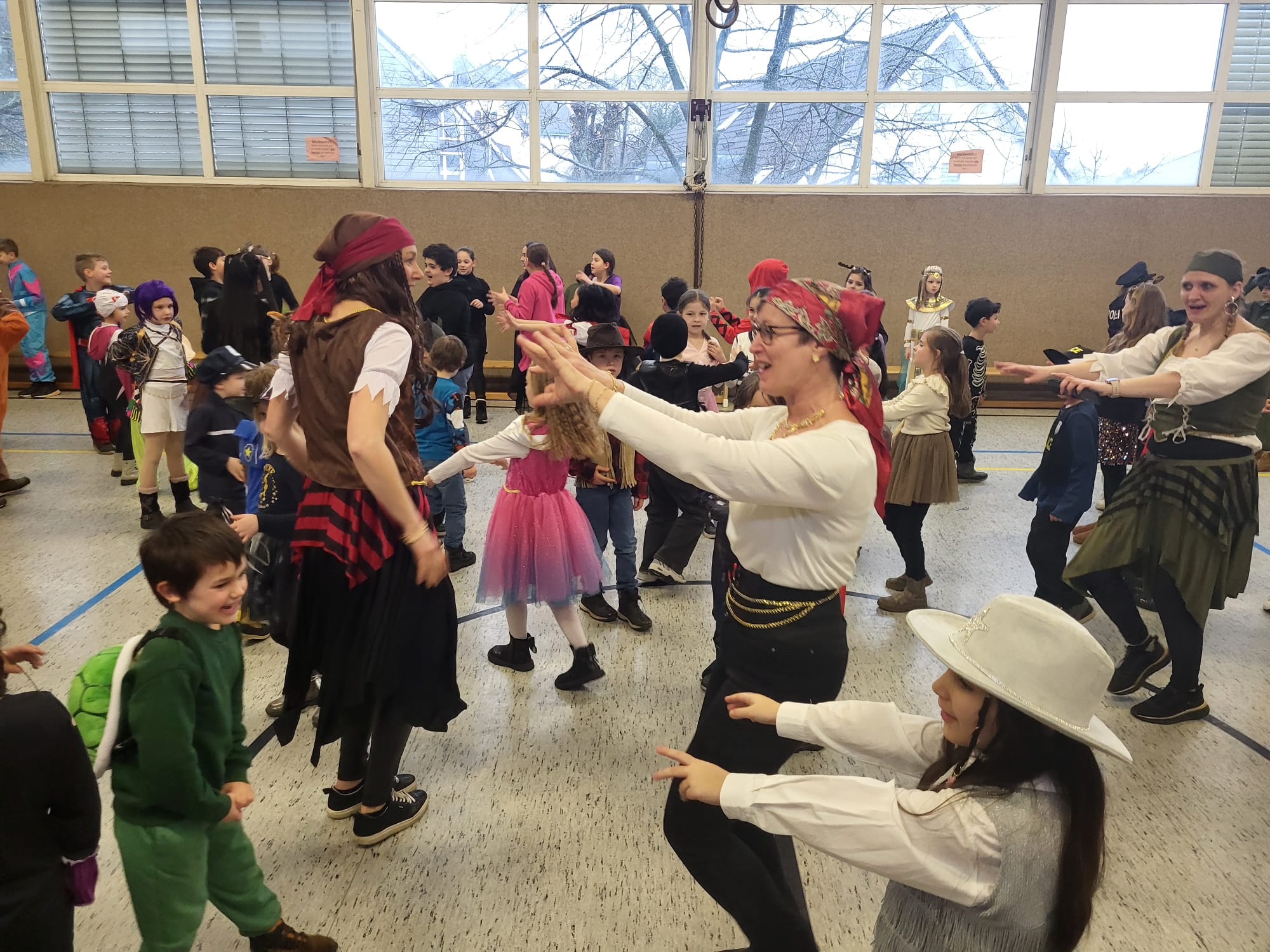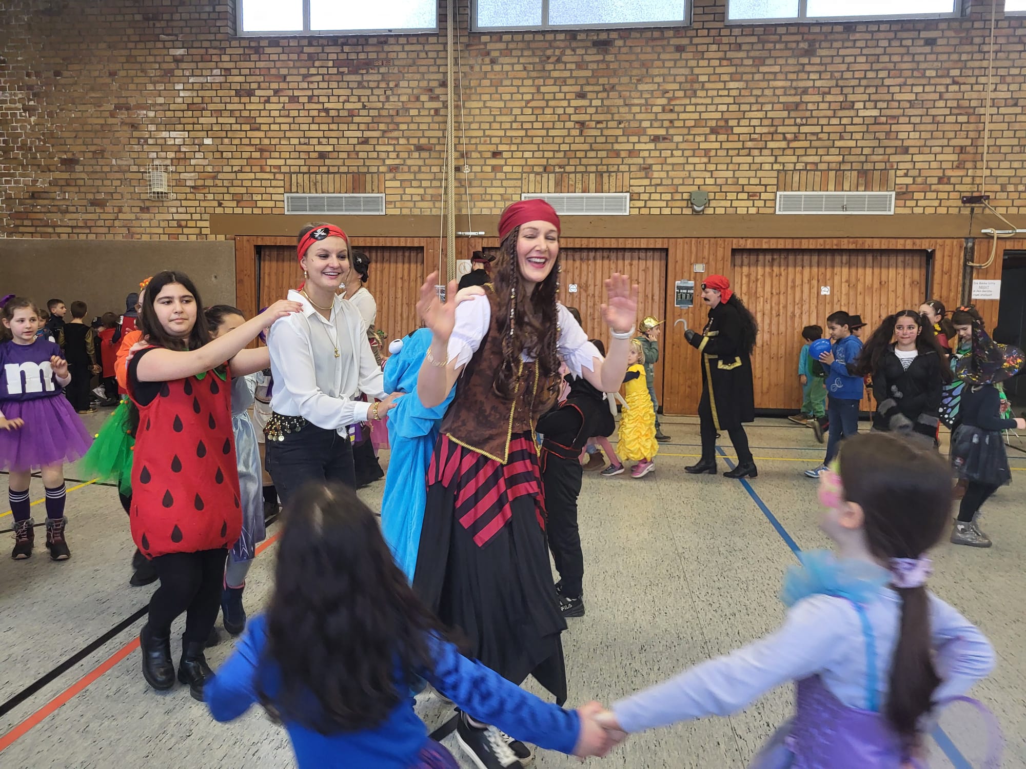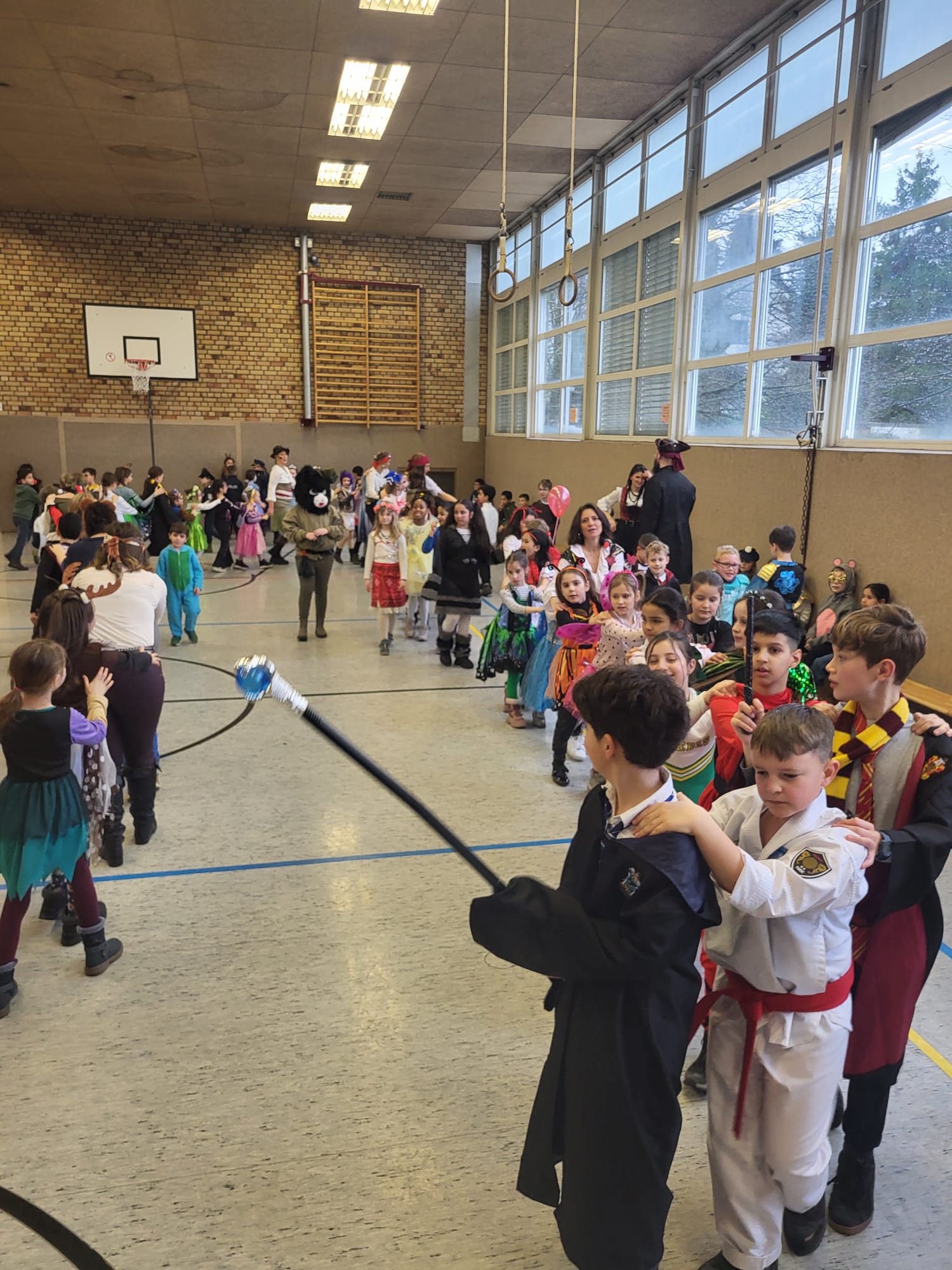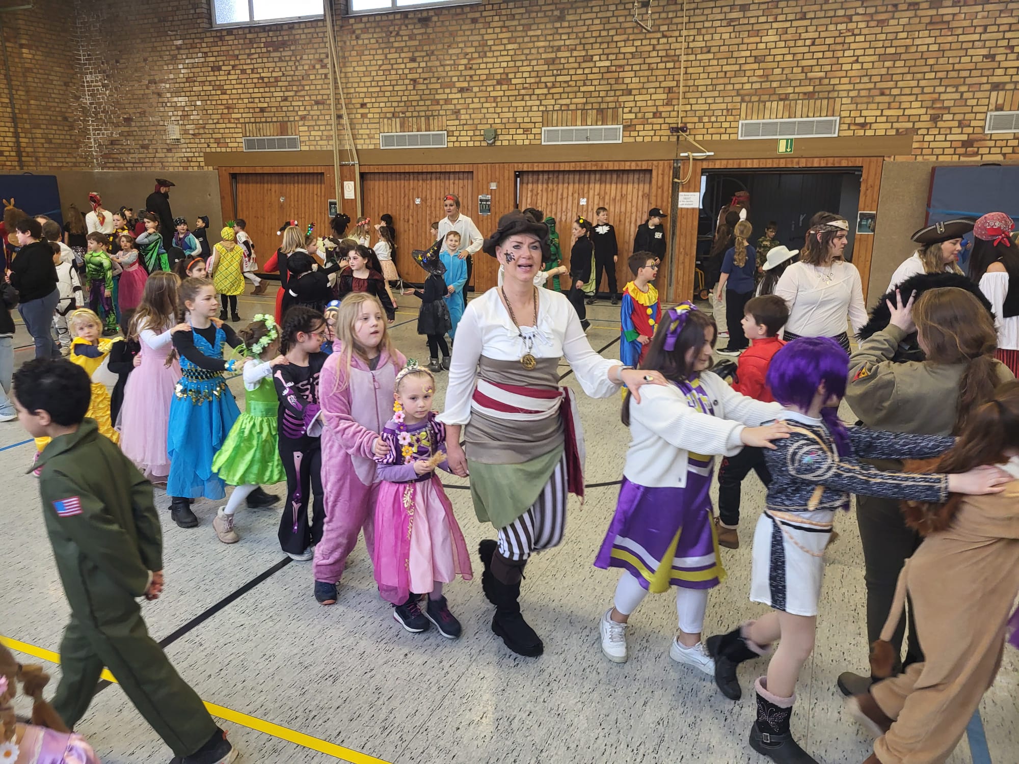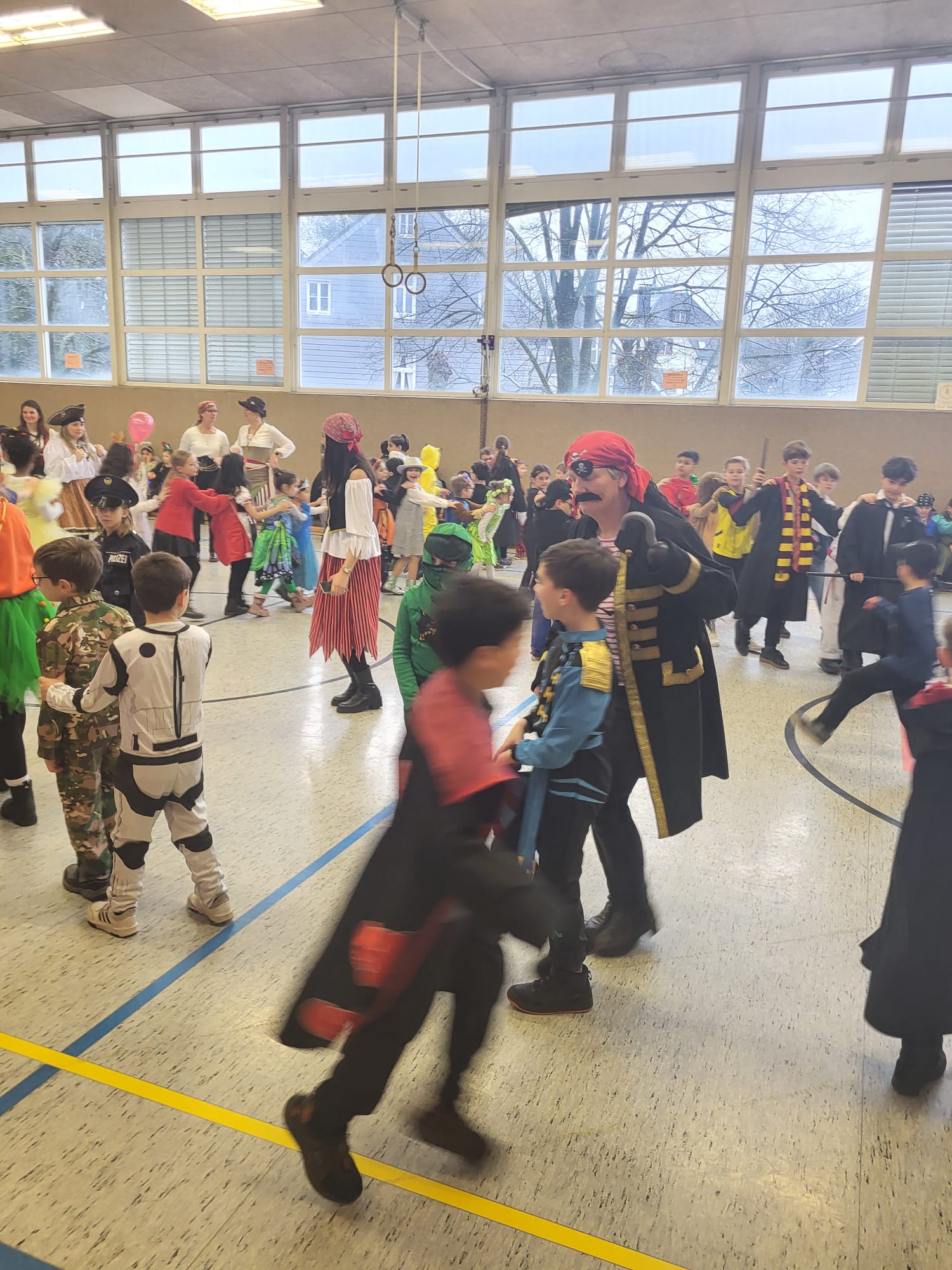 Traditionell an Weiberfastnacht feiert der Hasten Karneval. Dieses Jahr musste die Polonäse über den Schulhof leider ausfallen, da es in Strömen regnete. Dafür machte das jecke Treiben in der Sporthalle umso mehr Freude, denn die Polonäse wurde hier einfach nachgeholt. Unter die bunt und fröhlich kostümierten Kinder mischten sich in diesem Jahr eine große Schar an Piraten, die zum Glück in friedlicher Absicht gekommen waren!